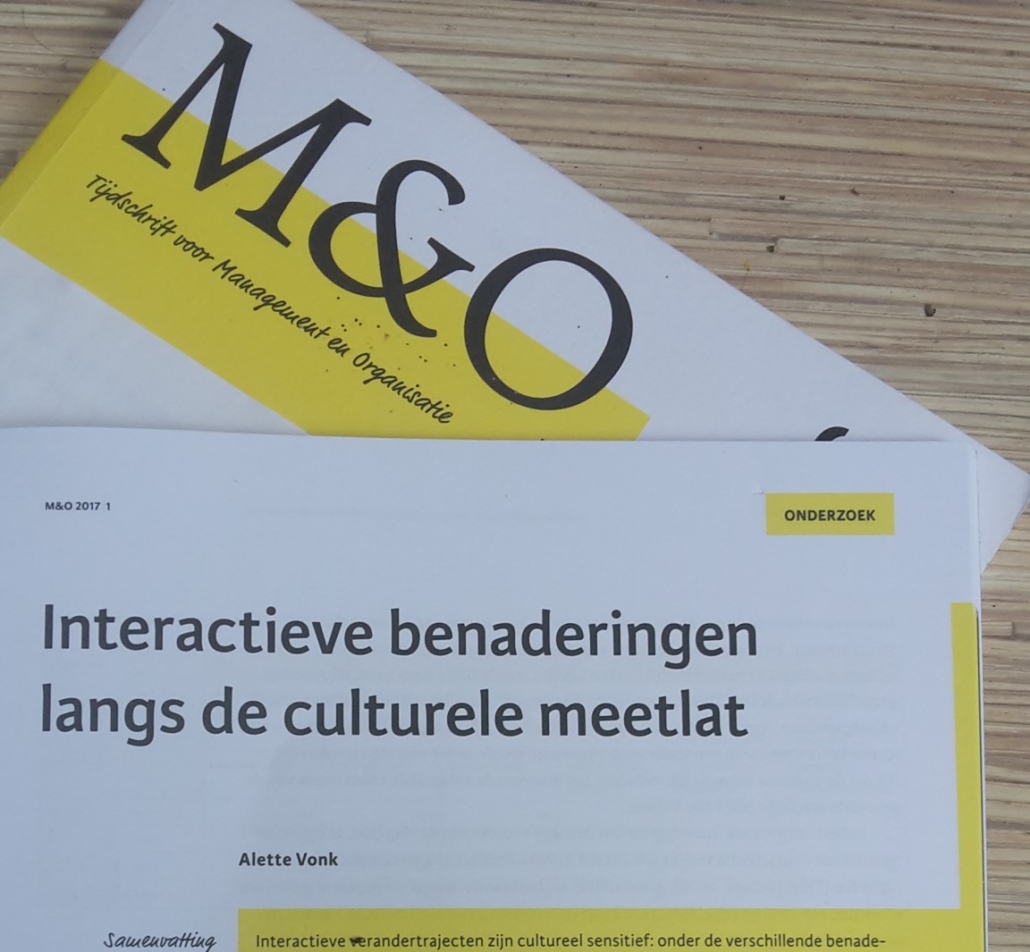 Article by Alette Vonk, published in M&O, the Magazine for Management and Organization in the Netherlands (M&O, jrg. 71, nr. 1, 2017) Title: ‘Interactieve benaderingen langs de culturele meetlat.’ or Interactive Approaches and Culture.